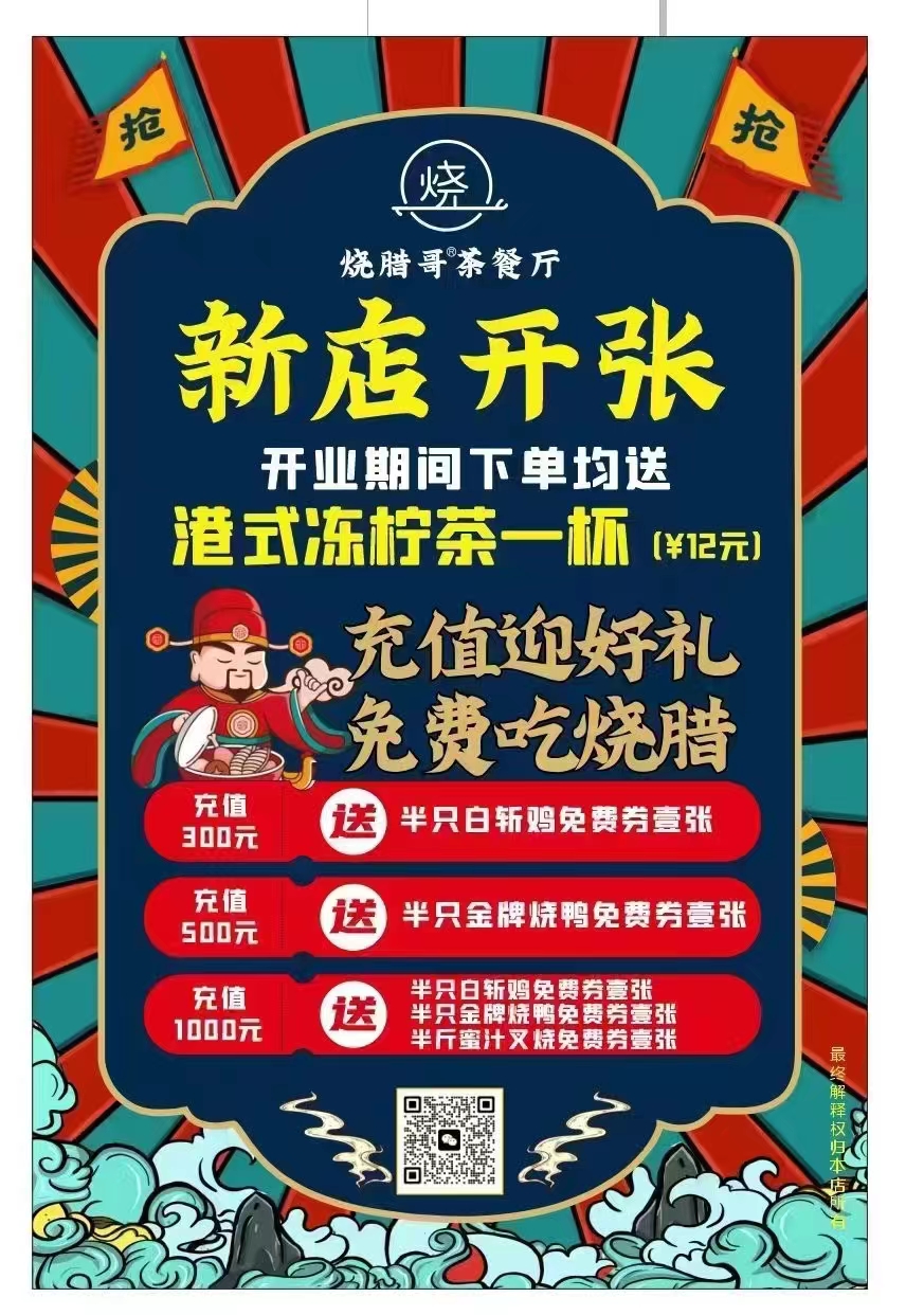 经过十几天的磨合试营业,烧腊哥茶餐厅于十一月初九要开业啦,新店开张、享 ...