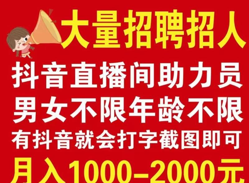 因本公司业务扩大,特诚聘大量看播气氛组,工作简单,会看直播 ...